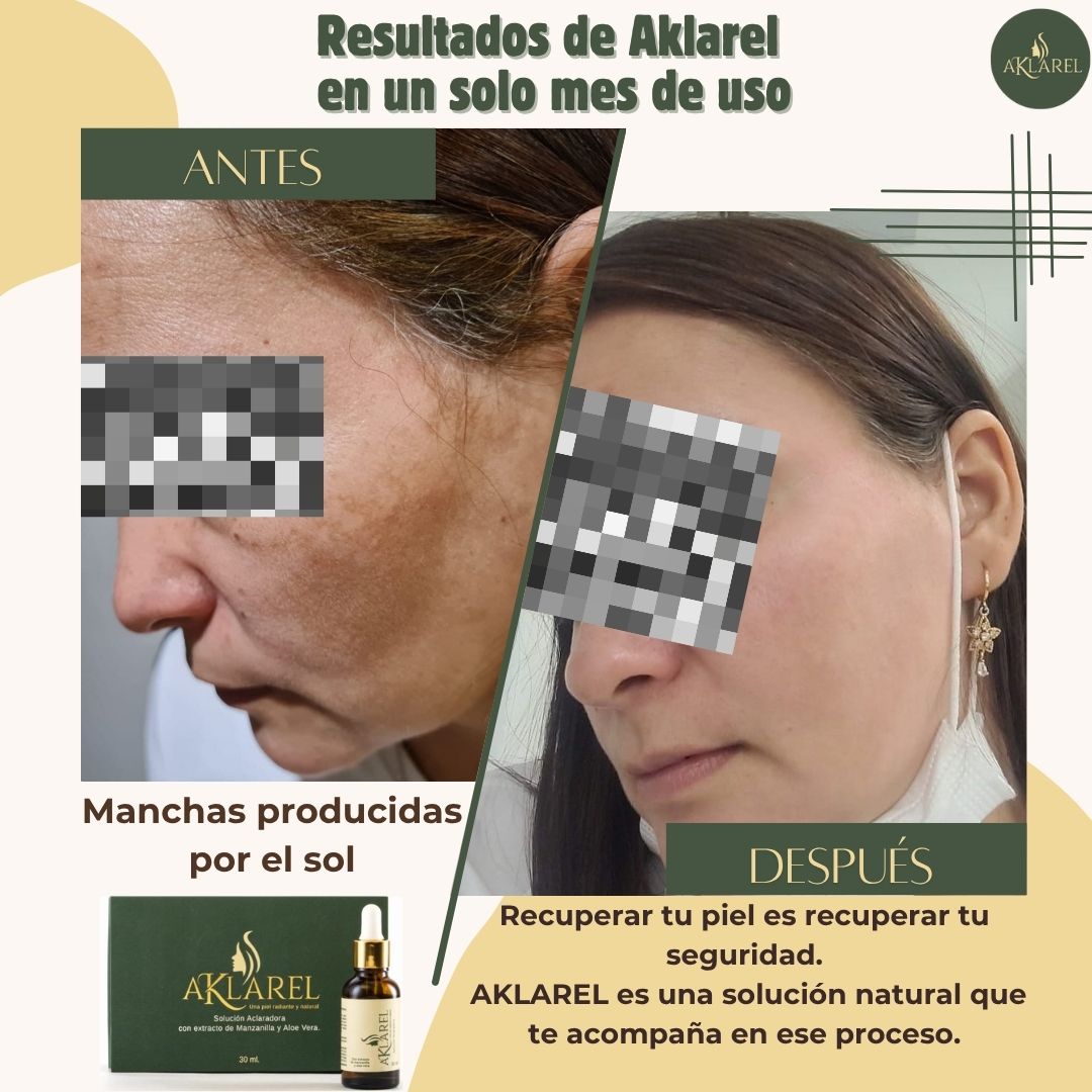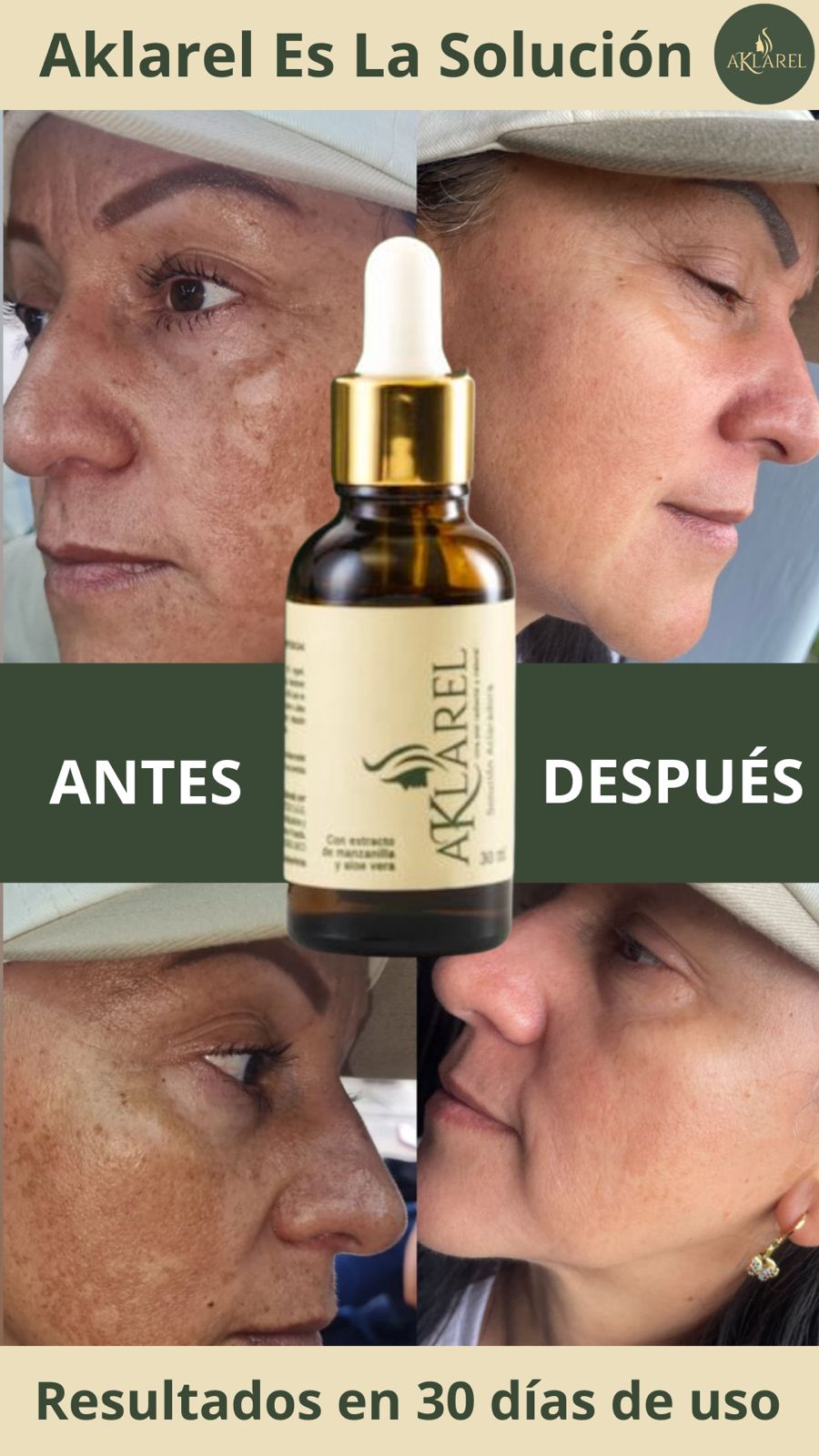 Cada piel tiene su historia y merece ser tratada con cuidado. Con Aklarel, no solo aplicas un sérum: comienzas un ritual que conecta ciencia y naturaleza para revelar lo mejor de tu rostro. No se trata de promesas vacías, sino de un proceso progresivo y real, pensado para brindarte seguridad, confianza y resultados visibles día tras día.”