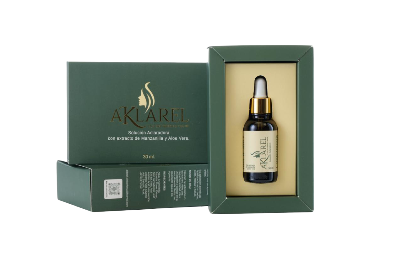 Descubre Aklarel, la solución aclaradora que transforma tu piel desde la primera aplicación. Su fórmula combina extractos naturales de manzanilla y aloe vera con potentes activos dermatológicos: Ácido Kójico y Vitamina C, que ayudan a unificar el tono y dar luminosidad; Ácido Glicólico, que exfolia suavemente y regenera; y Ácido Salicílico, que limpia los poros y controla el acné.